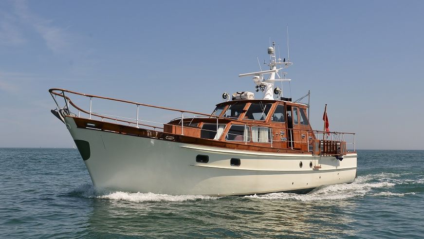 White Mouse II is a privately owned twin screw motor yacht (TSMY) originally built in 1963 by Philips of Dartmouth. She is a double skinned mahogany planked vessel which underwent major renovation and refit in the 1990s and in 2019/20. She is powered by twin 105hp Perkins diesel engines and has a 14kw Onan Generator and Vosper Thorneycroft Stabilisers. She had an electronics update in 2008 with the latest RayMarine and Furuno equipment installed including Chart Plotter, Radar, DSC VHF radio and AIS Transducer. A RayMrine E127 12in Hybrid Touch Multifunctional Unit was installed in 2015.